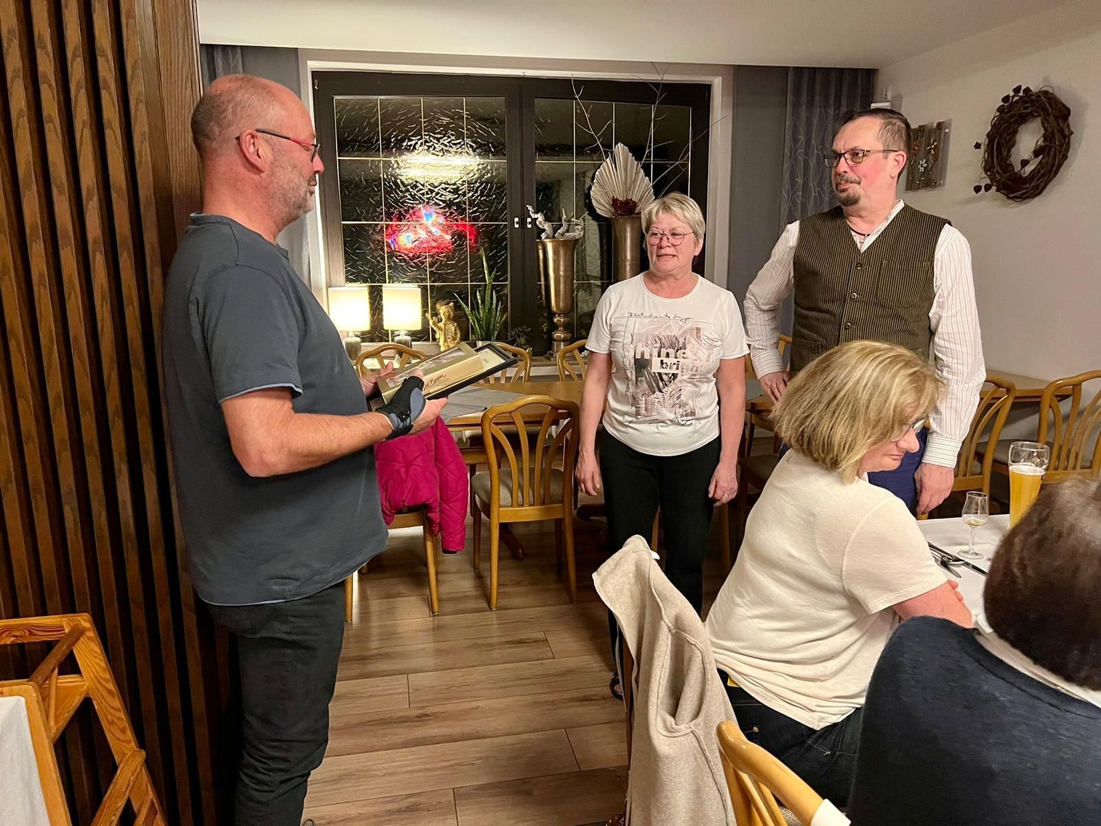 Elfriede und Harald Döttger mehrere Gutscheine für ein 4-Gänge-Menü, welche jetzt bei einem gemeinsamen Esssen eingelöst wurden.