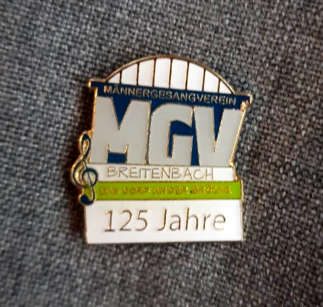 Zum Auftakt des Jubiläumsjahres zum 125jährigen Bestehen des MGV Breitenbach verteilte der Vorstand an alle Sänger Anstecknadeln mit dem Vereinslogo. Pünktlich zum ersten Auftritt des Jahres beim Neujahrsempfang der Stadt Bebra trugen die Sänger diese als Blickfang am Revers ihrer Sängerjacken.
